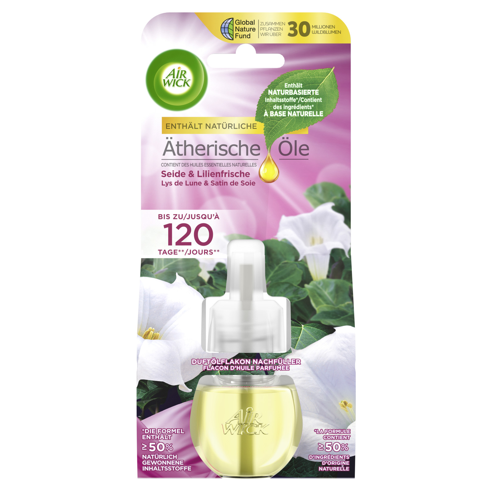 Air Wick Duftölflakon Nachfüller Seide & Lilienfrische - Ein verführerisch floraler Duft, inspiriert von sanfter Lilienfrische, einem Hauch von Seide und sinnlicher Vanille.